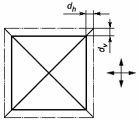 Прямоугольник, изображенный сплошной линией, представляет положение первого дисплея, а прямоугольник, изображенный штрих-пунктирной линией, представляет положение второго дисплея. Получаемое горизонтальное смещение представлено значением величины , а вертикальное смещение - .