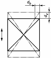 Прямоугольник, изображенный сплошной линией, представляет положение первого дисплея, а прямоугольник, изображенный штрих-пунктирной линией, представляет положение второго дисплея. Получаемое горизонтальное смещение представлено значением величины , а вертикальное смещение - .