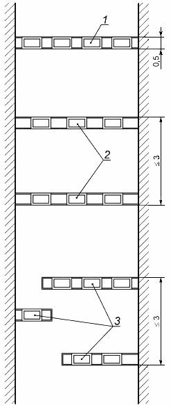 Любые сосуды, являющиеся частью рассредоточенного заслона и расположенные на участке выработки длинной не более 3 м.