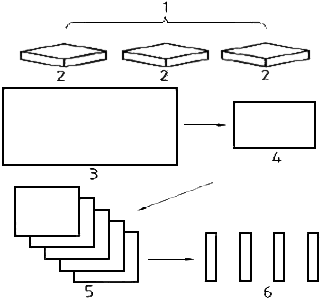 2 - единица продукции; 3 - лист; 4 - лист пробы; 5 - проба; 6 - испытуемые образцы