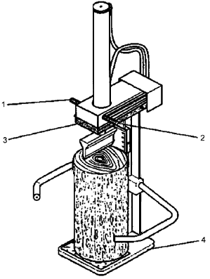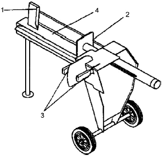 Станок, в котором сортимент устанавливается на неподвижно закрепленную плиту и раскалывается посредством колющего клина или в котором сортимент раскалывается посредством движения плиты навстречу неподвижно закрепленному клину (см. рисунки 1-3).
