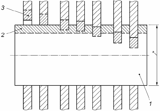 1 - основной вал; 2 - интервал допуска основного вала; 3 - интервал допуска различных отверстий; а - номинальный размер