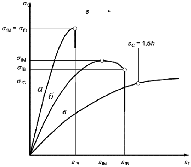 Относительная деформация изгиба при разрушении образца для испытания (рисунок 1, кривые а и б).
