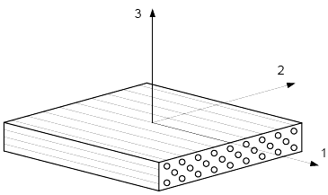 Рисунок 2 - Образец однонаправленно армированного полимерного композита, с указанием осей симметрии