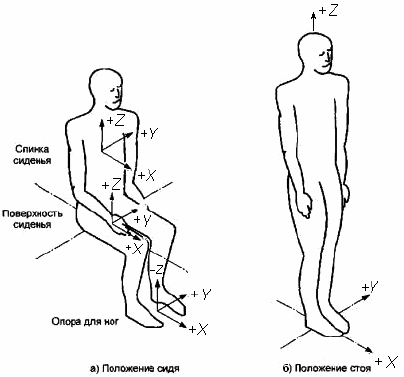 Система координат, зафиксированная относительно туловища человека и сориентированная, как показано на рисунке 2.