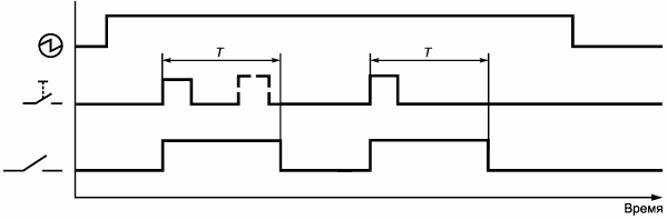 Примечание - Повторение управляющего сигнала в течение выдержки времени не запускает выдержку времени заново.