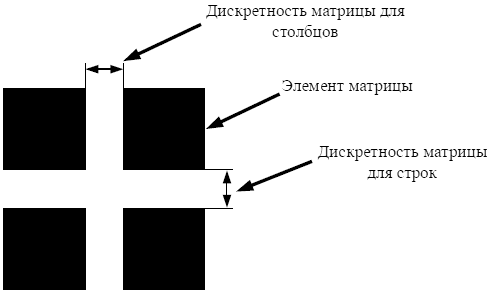 Расстояние между элементами матрицы, измеряемое в миллиметрах.
