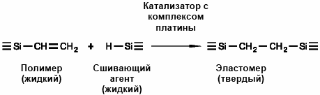 Эластомер, образованный в результате поперечной сшивки полимерных силоксановых цепей в процессе реакции между винильными функциональными группами винильного силоксанового полимера и кремнийгидридом, входящим в состав сшивающего агента, выполняющего функции SiH