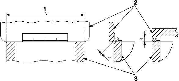 1 - шарнирная линия; 2 - крышка; 3 - ящик; A - расстояние между краями деталей, соединенных шарниром
