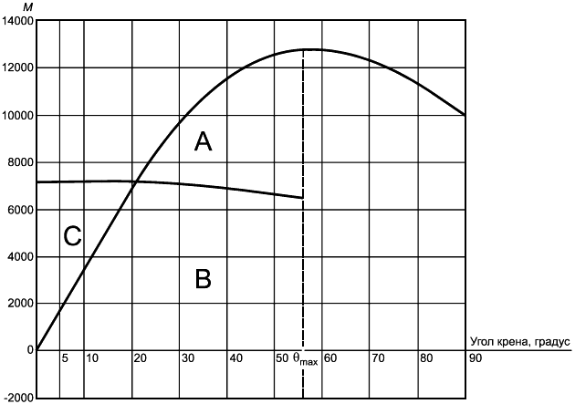 Кривая, показывающая зависимость восстанавливающего момента, который действует на наплавной объект, от угла крена наплавного объекта (см. рисунок 1).