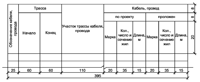 Кабельный журнал для прокладки методом трасс (ГОСТ 21.613-2014)