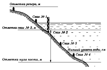 Рисунок 3.1 - Схема высотного положения устройств для измерения уровня воды относительно нуля поста