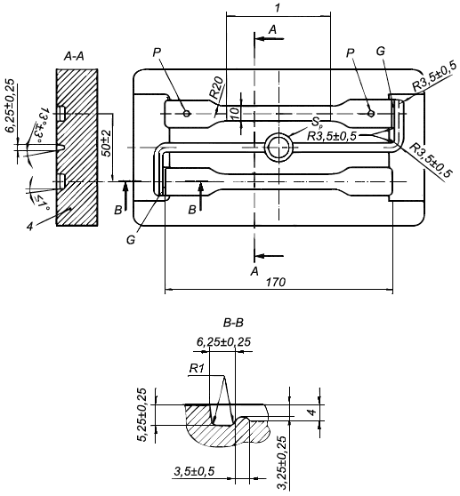 Примечание - Одинаковая геометрия пути движения пластифицированного материала и симметричное расположение полостей обеспечивает одинаковые свойства образцов для испытаний, изготовленных из одной партии материала.