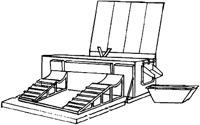 Предназначена для приема транспортных средств, хранения и порционной выдачи товарного раствора в расходную тару на строительных объектах. Установка представляет собой корытообразную емкость с двойными стенками, между которыми проложена теплоизоляция и размещены трубчатые электронагреватели. Внутри емкости расположены шнек и лопастное колесо, которые перемешивают раствор и выдают его в расходную тару через затвор в торце емкости.