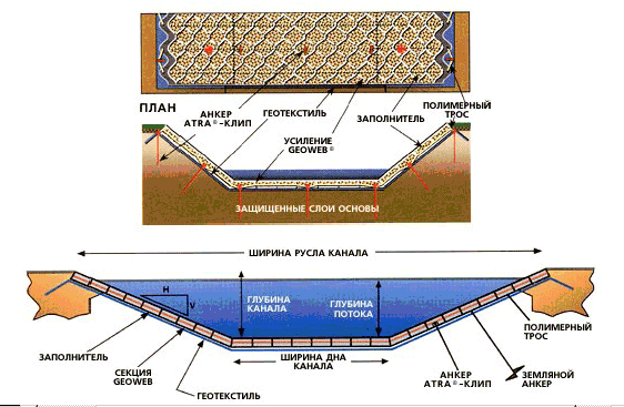Основные компоненты укрепляющей системы Geoweb, применяемой для укрепления русел водотоков