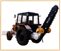 Оснащен цепью для прорезки траншеи шириной 140 мм, изготовленной по собственной уникальной технологии. Заменяется на режущую цепь с надежным редуктором для работы в летних грунтах I-III категорий. Ширина прорезаемой траншеи 280 и 400 мм.