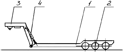 Состоит из грузовой платформы 1, опирающейся на три оси 2, хобота 3, гидроцилиндров 4.