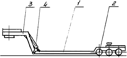 Состоит из грузовой платформы 1, опирающейся на три оси 2, хобота 3, гидроцилиндров 4.