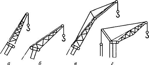 а - удлинитель; б - неуправляемый гусек; в - неуправляемый гусек с удлинителем; г - управляемый гусек (башенно-стреловое оборудование)