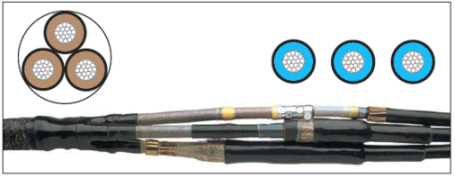 Муфты переходные для соединения кабелей с пластмассовой изоляцией и трехжильных кабелей с бумажной изоляцией в общей оболочке на напряжение 6, 10, 20 и 35 кВ "Тайко Электроникс Райхем"