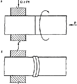 Сущность процесса заключается в том, что свариваемые стержни соприкасаются торцами и при определенном осевом давлении (рис.1) имеют относительную частоту вращения 500-1500 мин.