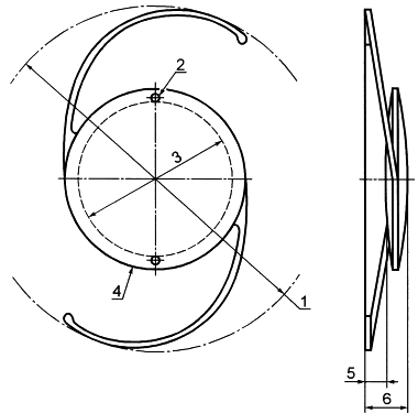 1 - общий диаметр; 2 - позиционное отверстие; 3 - оптическая часть; 4 - тело; 5 - высота свода; 6 - саггиталь