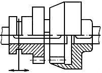 Синхронная муфта с механической связью, у которой управление соединения и разъединения валов осуществляется путем ввода или вывода в зацепление зубьев одной из полумуфт, установленной подвижно на валу, с зубьями другой полумуфты