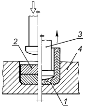 1 - сварной шов; 2 - заготовка; 3 - пуансон; 4 - матрица