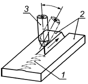 1 - сварной шов; 2 - заготовка; 3 - горелка