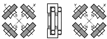 Сумма южных (S) и северных (N) полюсов электромагнитов радиального АМП (см. рисунок)