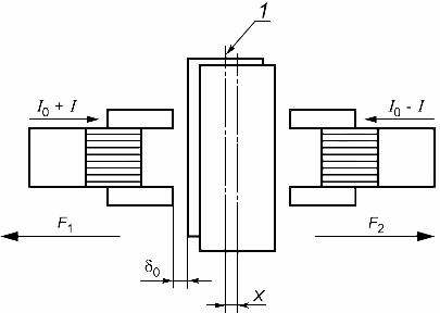 Примечание - Связь между силами притяжения, токами электромагнита и перемещением вала описывается формулами: