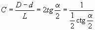 Отношение разности диаметров в двух поперечных сечениях конуса к расстоянию между этими сечениями (см. рисунок 1).