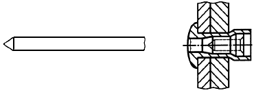Сердечник, который за счет заранее определенной деформации сердечника и/или тела заклепки повышает сопротивление выталкиванию сердечника и после установки заклепки обрывается в районе головки заклепки (рисунок 9).