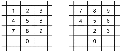 [1-2-3 (телефонная раскладка) - слева; 7-8-9 (компьютерная раскладка) - справа]