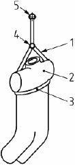 1 - спасательная петля; 2 - манекен корпуса человека; 3 - основная лямка; 4 - элемент подгонки; 5 - элемент крепления