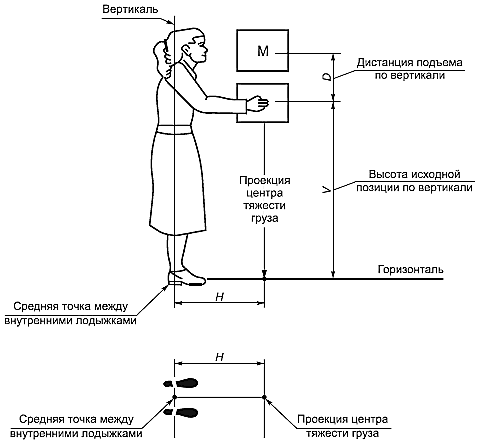 Абсолютное значение разности между положением центра тяжести груза в начале и в конце подъема по вертикали (см. рисунок 6).