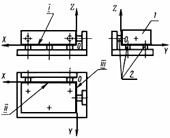 База, используемая для наложения на заготовку или изделие связей, лишающих их трех степеней свободы - перемещения вдоль одной координатной оси и поворотов вокруг двух других осей