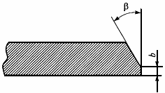 Острый угол между плоскостью скоса кромки и плоскостью торца детали или торцовая поверхность детали после механической обработки до заданных чертежом размеров, рис.А.17