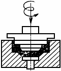 Выдавливание с одновременным приложением к торцам заготовки крутящего момента относительно ее оси за счет вращения инструмента