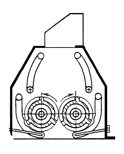 Дробилка, в которой загружаемый материал поступает одновременно на все основные рабочие органы.