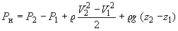 высота центра тяжести сечения выхода и входа в насос, м.