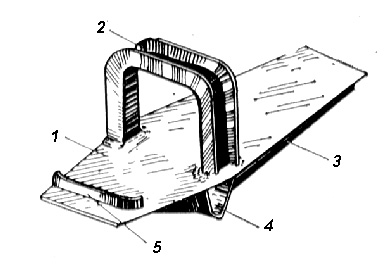 1 - платформа; 2 - скоба; 3 - ребро; 4 - опора; 5 - ограничитель