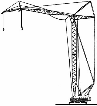 Кран на гусеничном ходу со стрелой, установленной на мачте и с гуськом