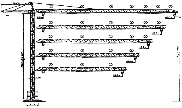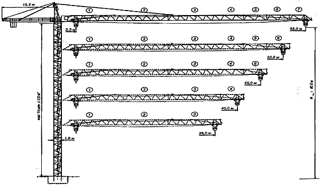 * Возможна установка секций башни длиной 6,0 м и 12,0 м (при этом суммарная высота башни не должна превышать указанной величины).