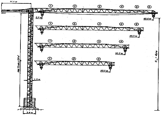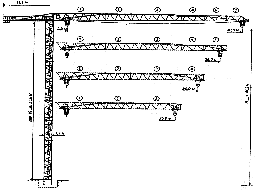 * Возможна установка секций башни длиной 6,0 м и 12,0 м (при этом суммарная высота башни не должна превышать указанной величины).
