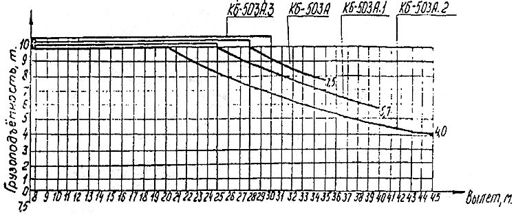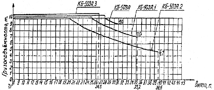 График грузоподъемности крана при горизонтальном положении стрелы