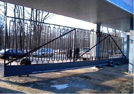 откатные ворота консольного типа (когда ворота открыты, в проеме нет никаких направляющих)