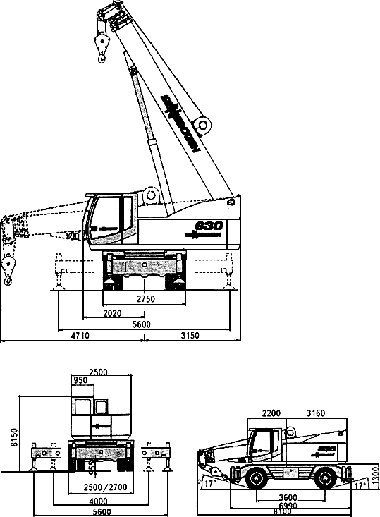 Рис.1. Кран "Sennebogen" 630M в транспортном положении и на опорах