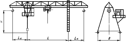 Рис.1. Кран козловой электрический общего назначения с электрической талью грузоподъемностью 5 т решетчатой конструкции с жесткой и гибкой опорами
