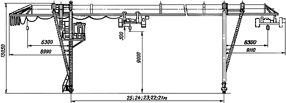 Рис.1. Кран козловой электрический специальный грузоподъемностью 12,5 т пролетом 21-25 м с двумя жесткими опорами